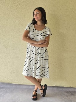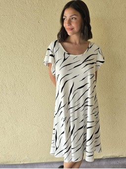 Vestido corto de lurex elastizado con cuello buche y espalda cruzada.