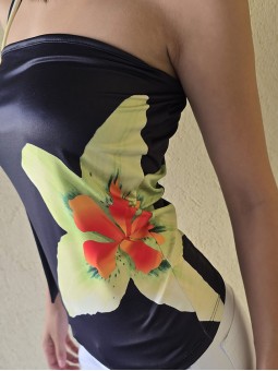 Top de modal soft con frunce lateral y lazo para ajustar.