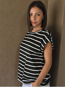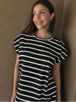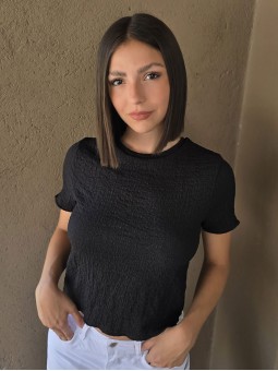 Top musculosa de morley de seda con costuras de frunce al costado.