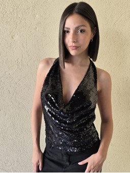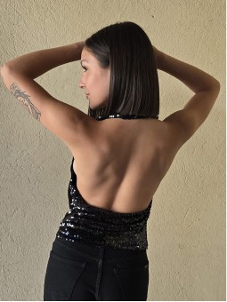 Body en crepe de morley, manga corta, con escote cuadrado y ganchitos inferiores para acceso.