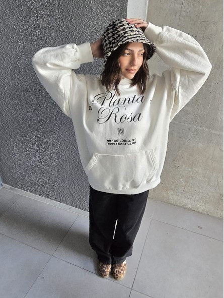 Maxibuzo de algodón frisado, corte oversize, con capucha y bolsillos.