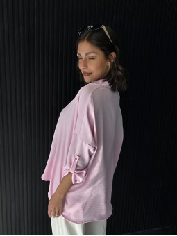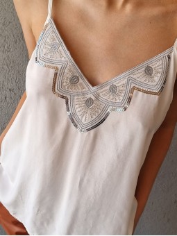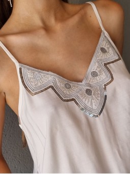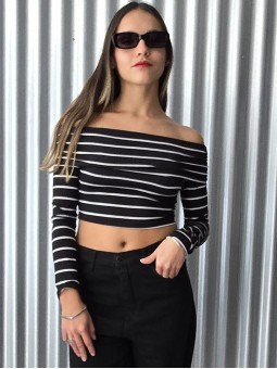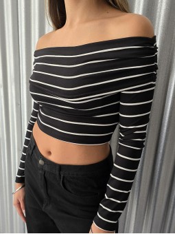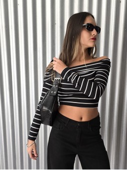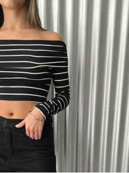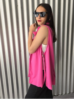 Top de microfibra irregular con detalle de hebilla en el hombro.