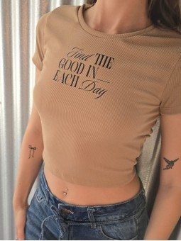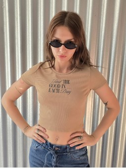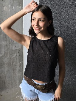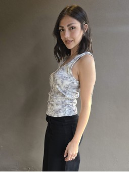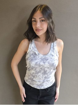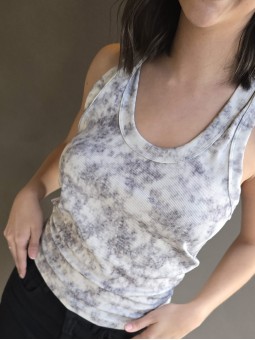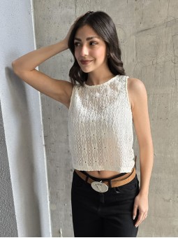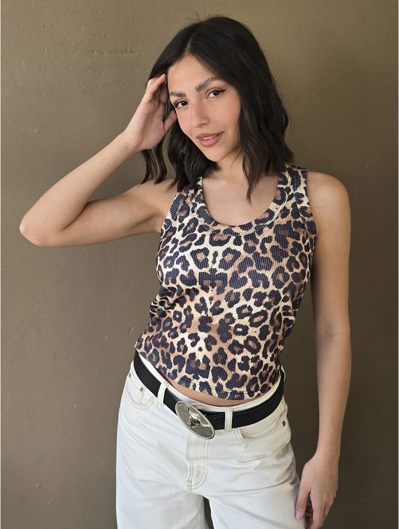 Musculosa de waffle de algodón con estampa print, sobre base crema.