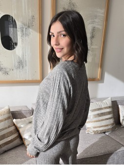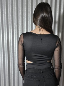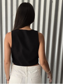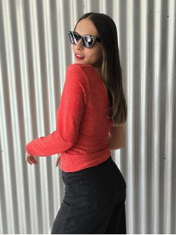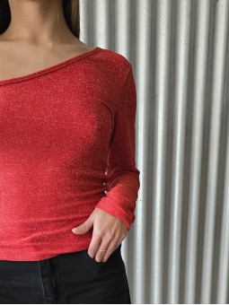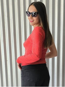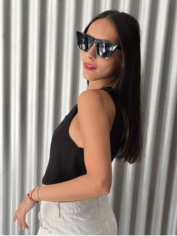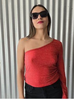 Top elastizado de bambula con frunces y volados en hombros.