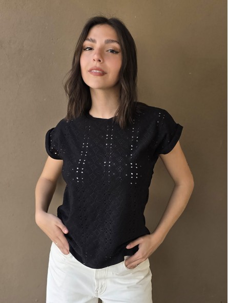 Remera manga corta de broderie.