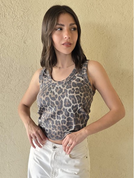 Musculosa de waffle de algodón con estampa print, sobre base beige.