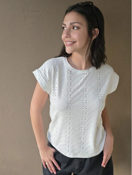 Remera manga corta de broderie.