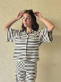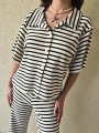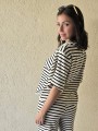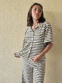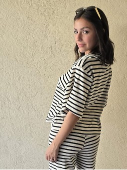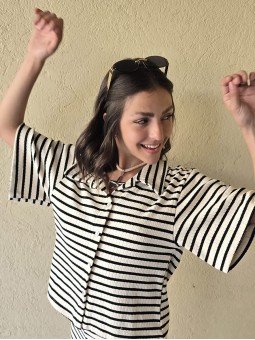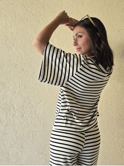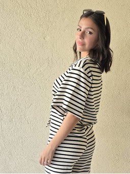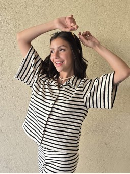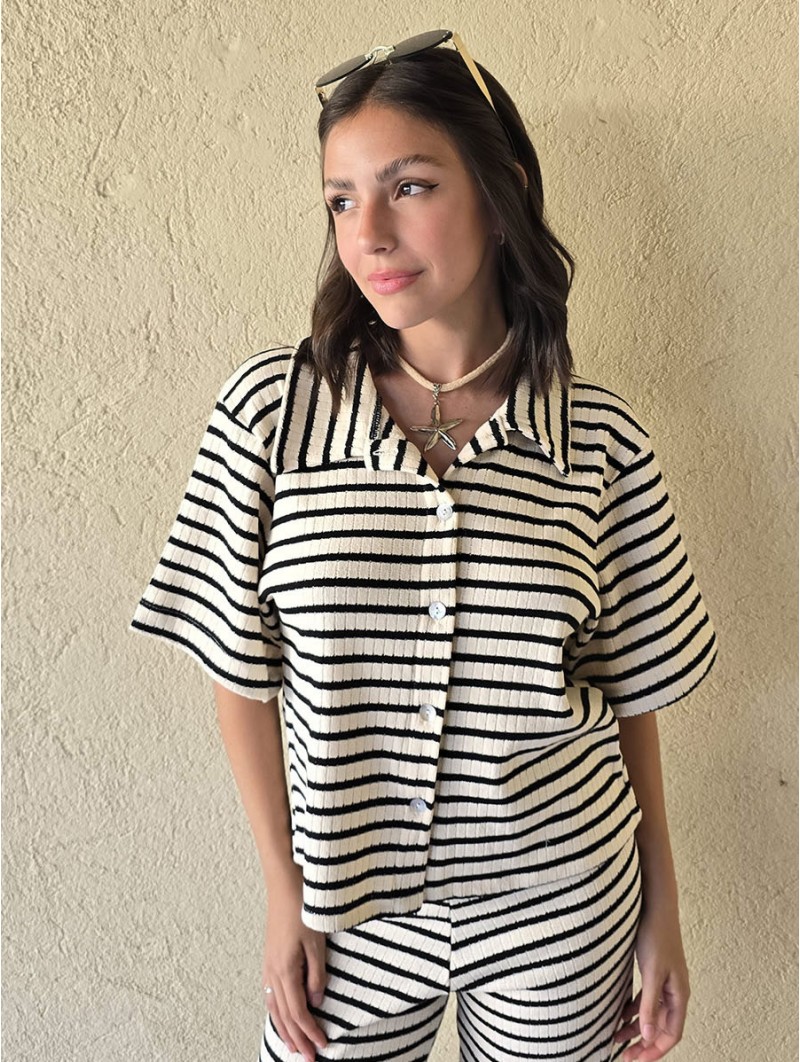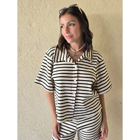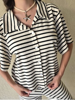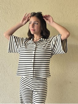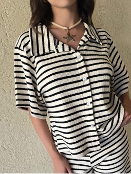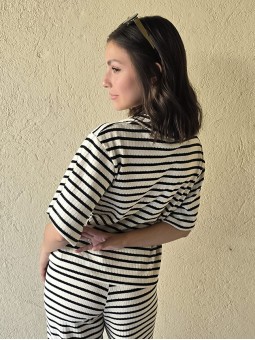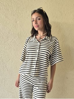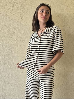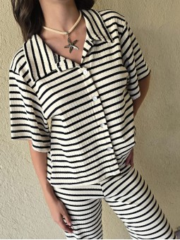 Camisa tejida de hilo de algodón combinada a rayas negras.