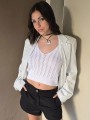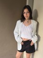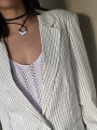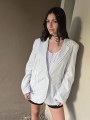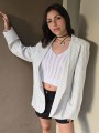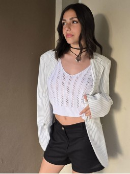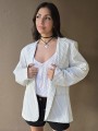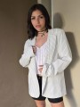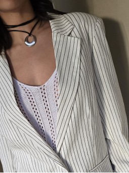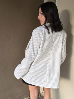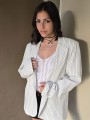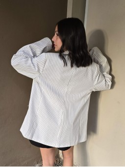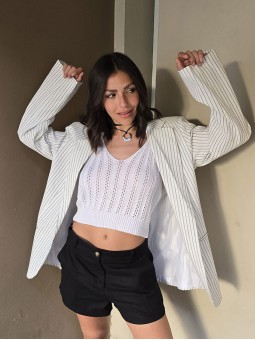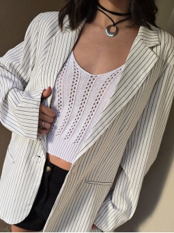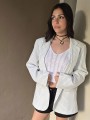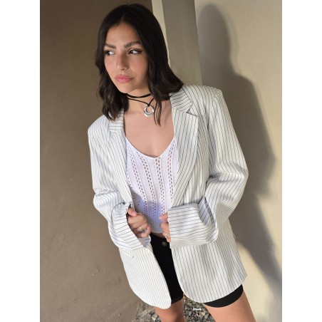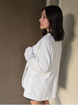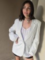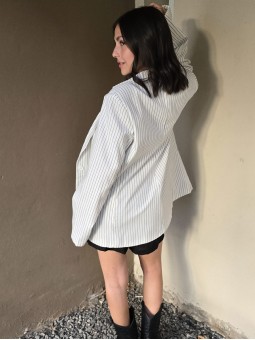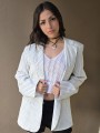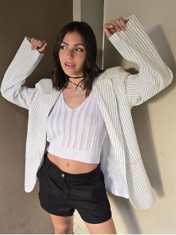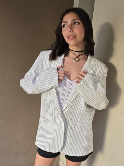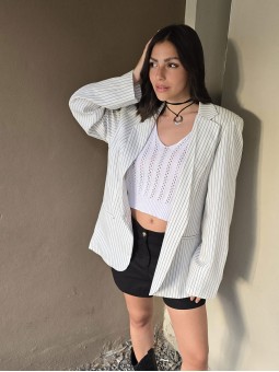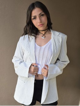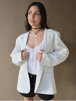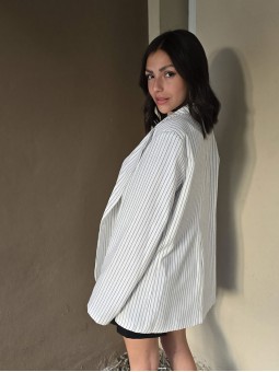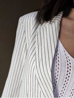 Blazer de lino rayado, cruzado, con boton en delantero. Tiene forreria y hombreras.