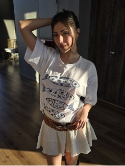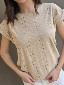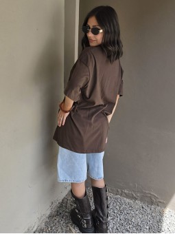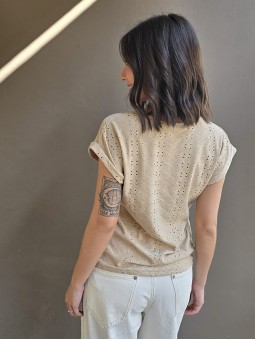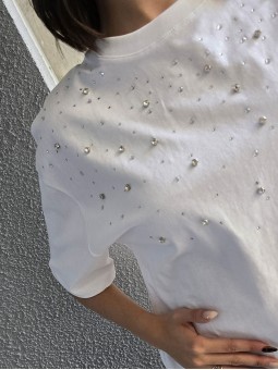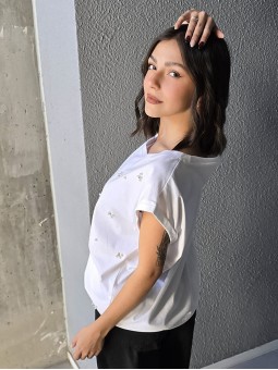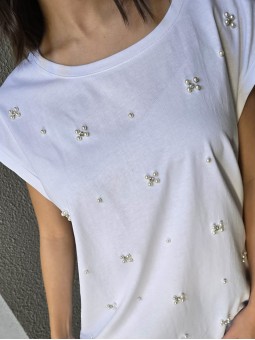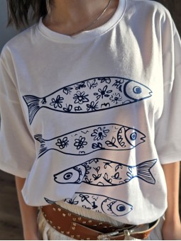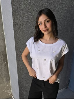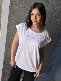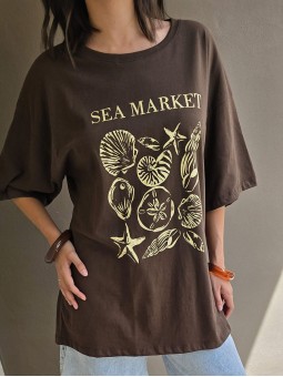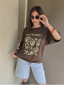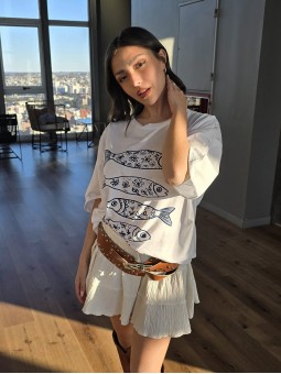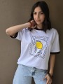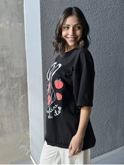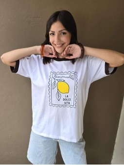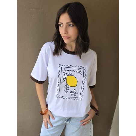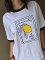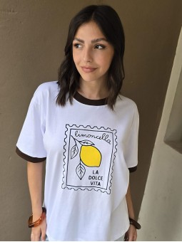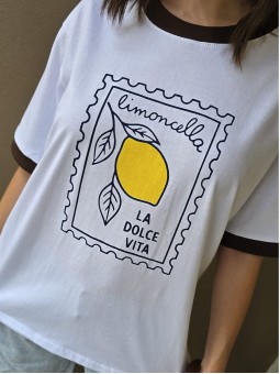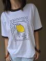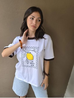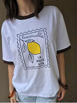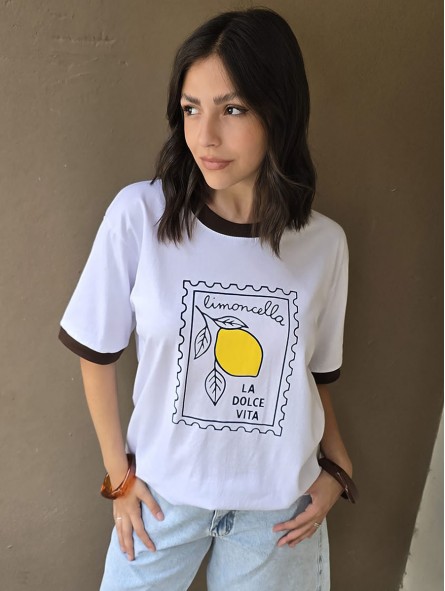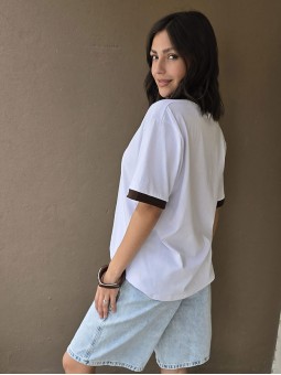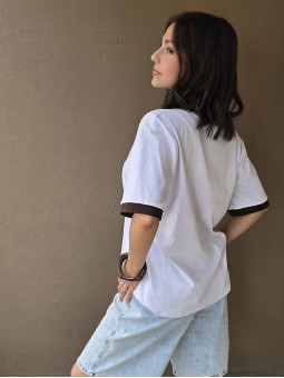 Remera de algodón con estampa delantera y vivo a contratono en cuello y mangas.