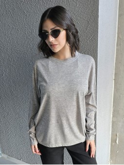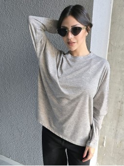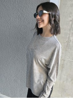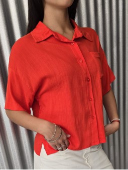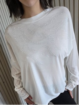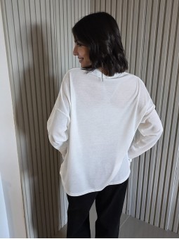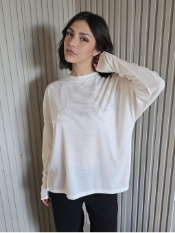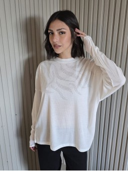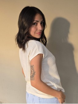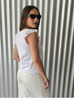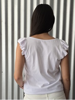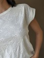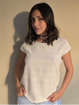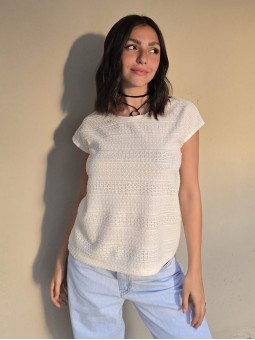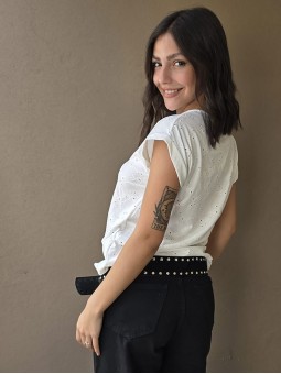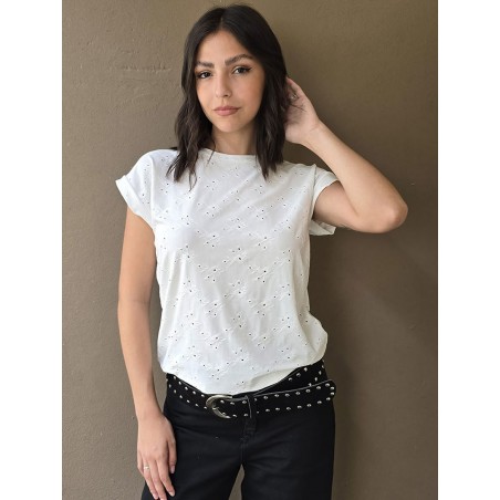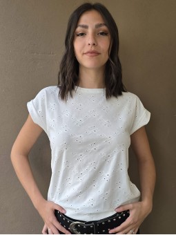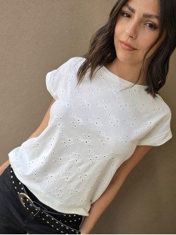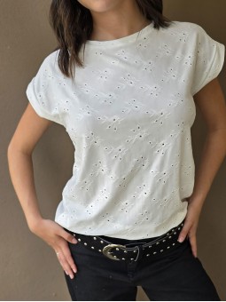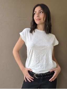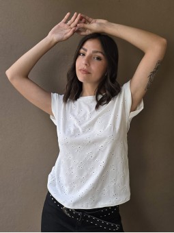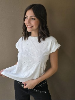 Remera manga corta de broderie, con doblez en manga.