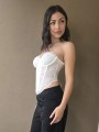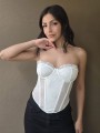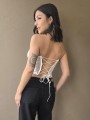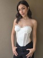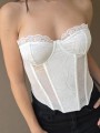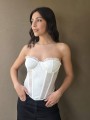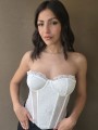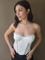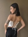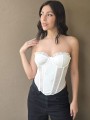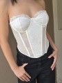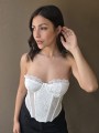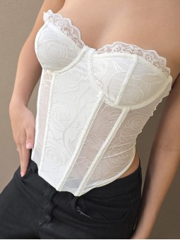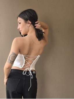 Corset de encaje, con ballenas forradas y lazo para regular en la parte trasera.