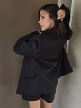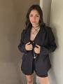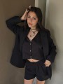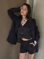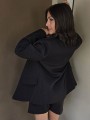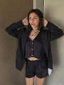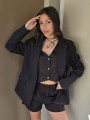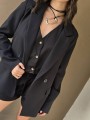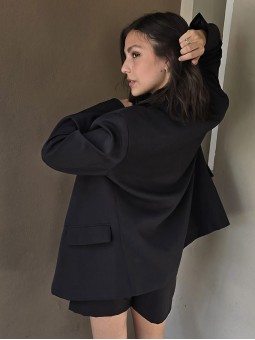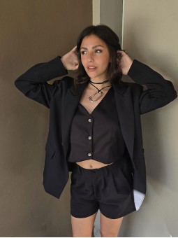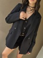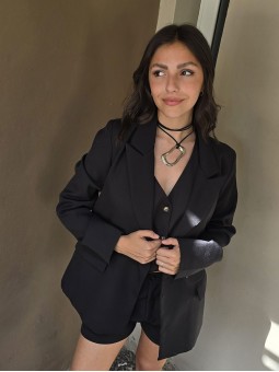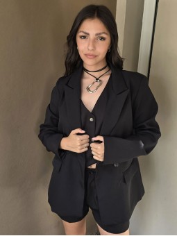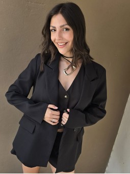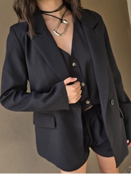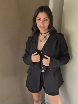 Blazer de crepe sastrero con forrería interna y cruzado en frente con botones.