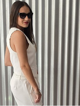 Short de crepe sastrero con pinzas en delantero y elástico en cintura. Con bolsillos laterales y presilla pasacinto.