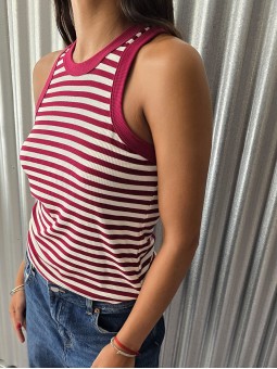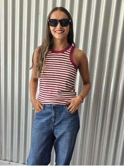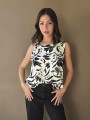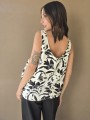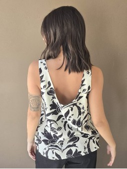 Blusa de lino estampada, con bretel ancho y escote en espalda.