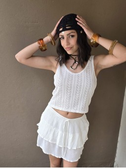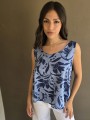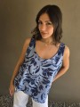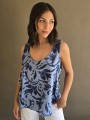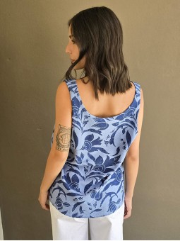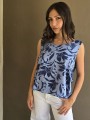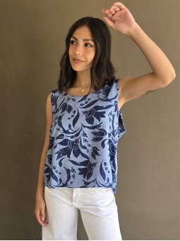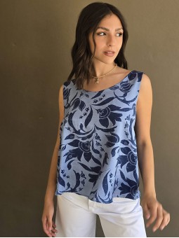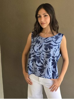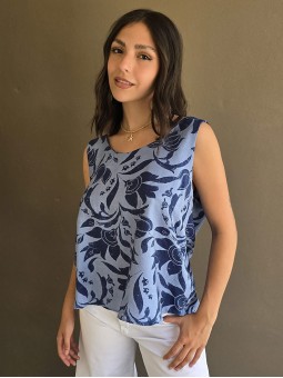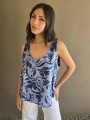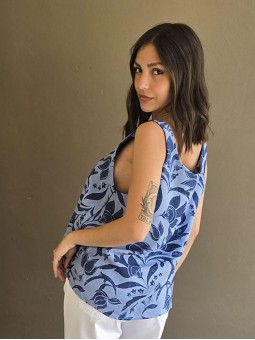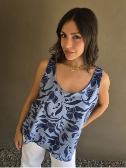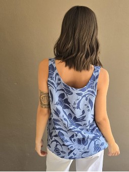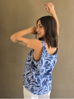 Blusa de lino estampada, con bretel ancho y escote en espalda.