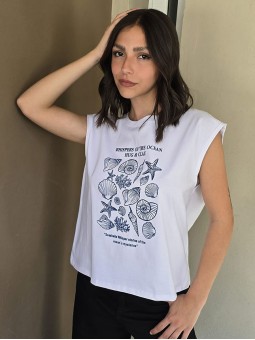 Remera de algodón sin mangas, con estampa delantera.