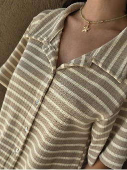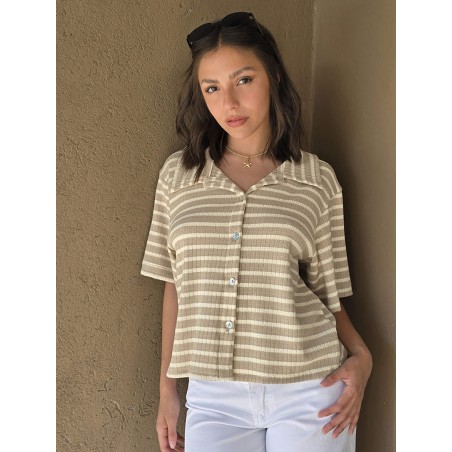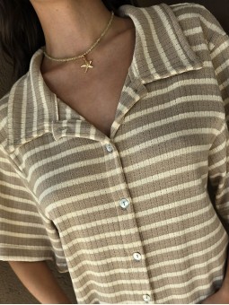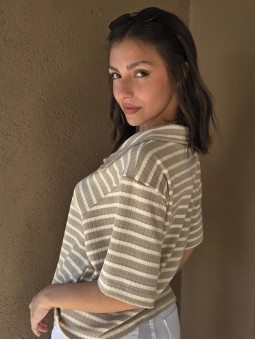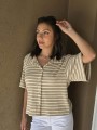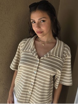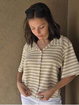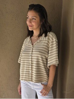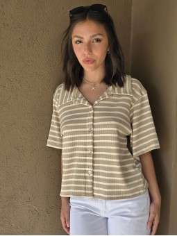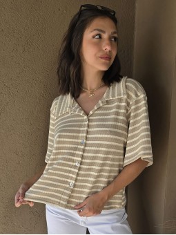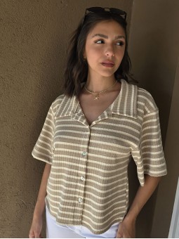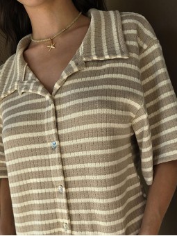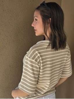 Camisa tejida de hilo de algodón combinada a rayas negras.