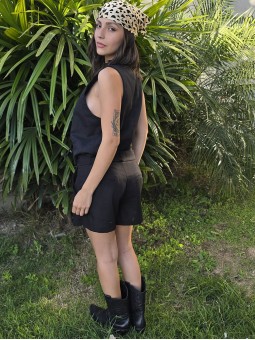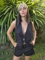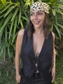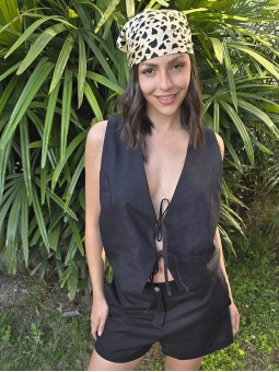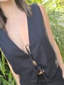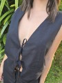 Chaleco de lino , con tiras para atar enfrente, con forreria interna.