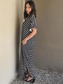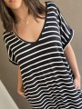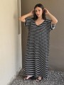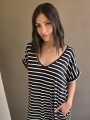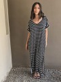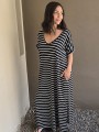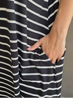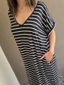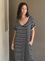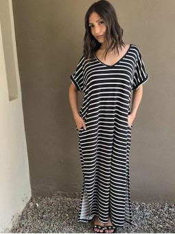 Vestido largo de modal soft, con cuello V y mangas cortas. Corte amplio, oversize, con tajos inferiores y bolsillos.