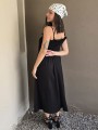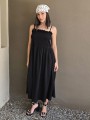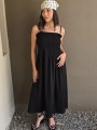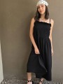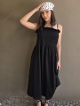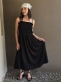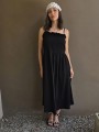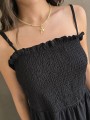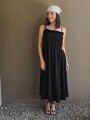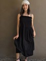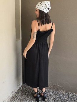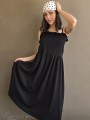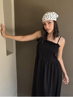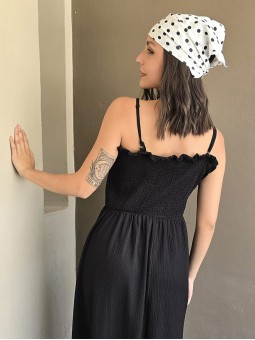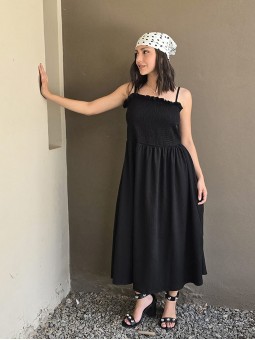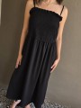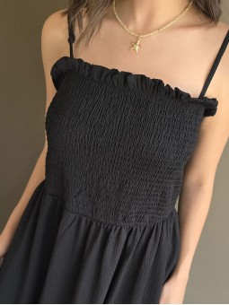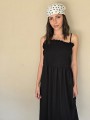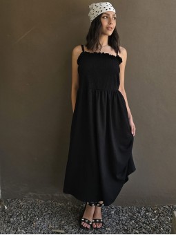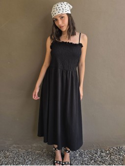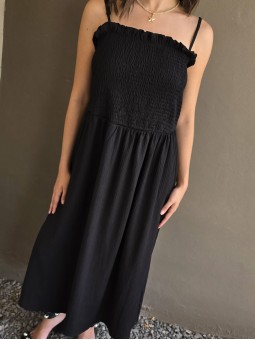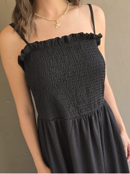 Vestido en crepe de bambula, con breteles finos ajustables y bustier panal de abeja elastizado.