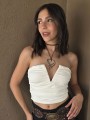 Strapless de microfibra con frunce y ballena en escote.