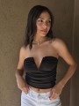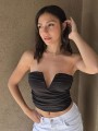Strapless de microfibra con frunce y ballena en escote.