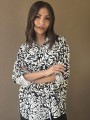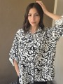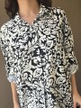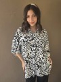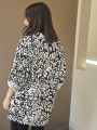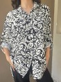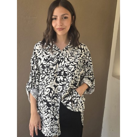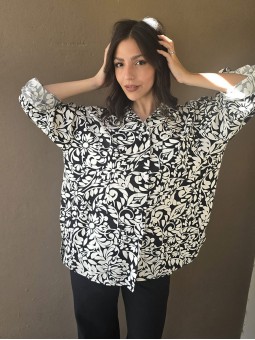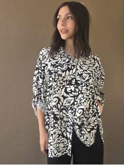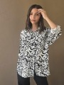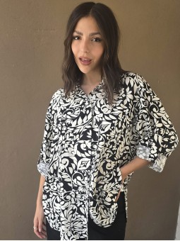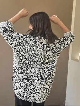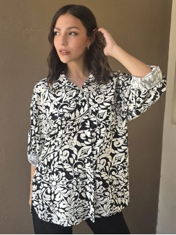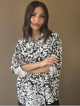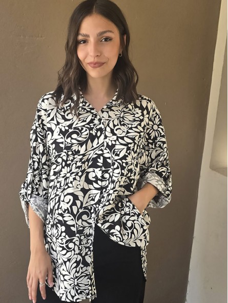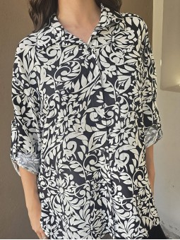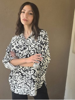 Camisa de lino estampada, con mangas largas y botón para arremangarlas.