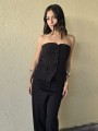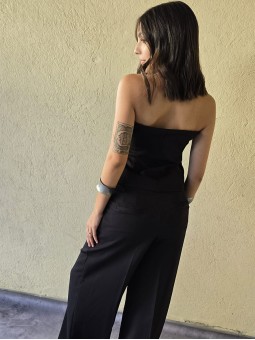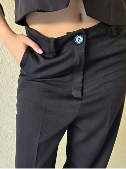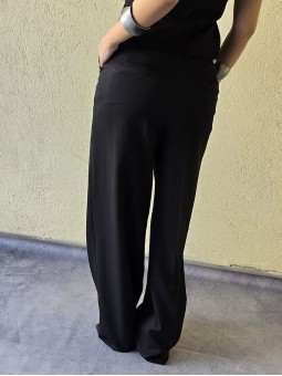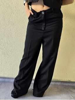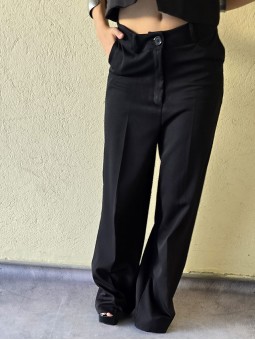 Pantalon de crepe sastrero tiro alto, con bolsillos ojal atras.