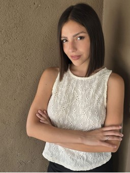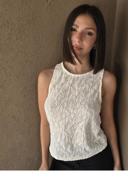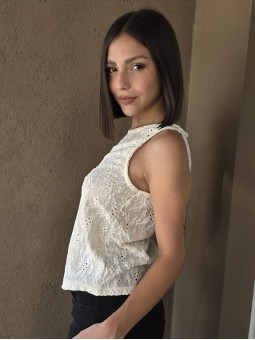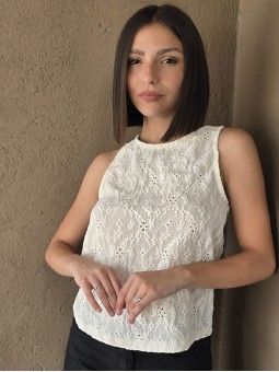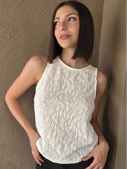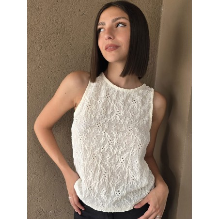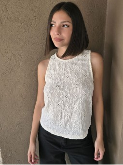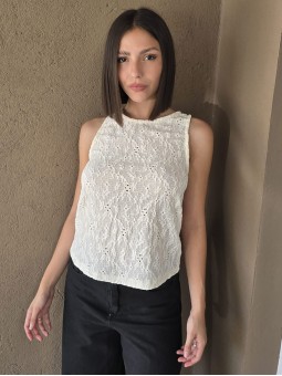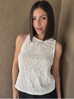 Musculosa larga de broderie de algodón, con espalda ojal.