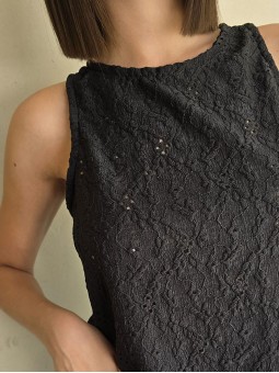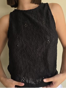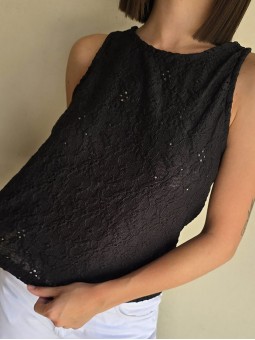 Musculosa larga de broderie de algodón, con espalda ojal.
