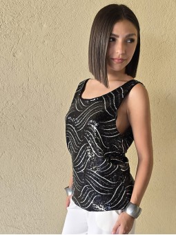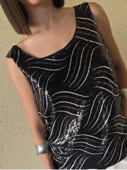 Musculosa bordada con lentejuelas bordadas y forrería interna.