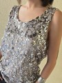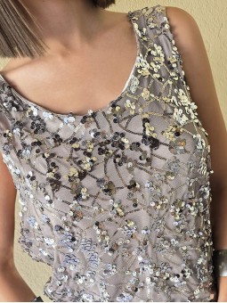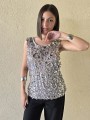 Musculosa importada, con lentejuelas bordadas y forrería interna.