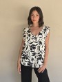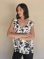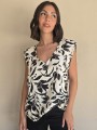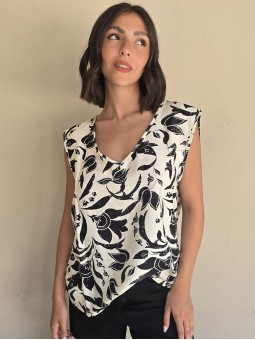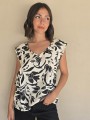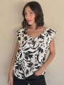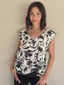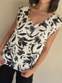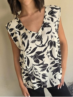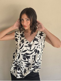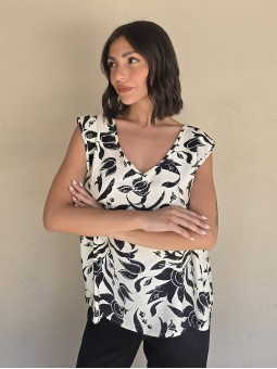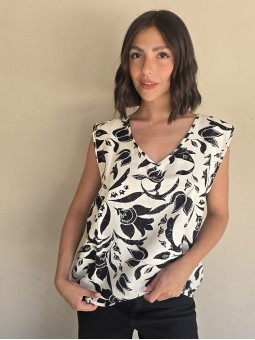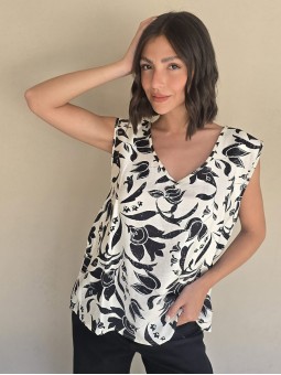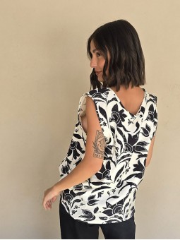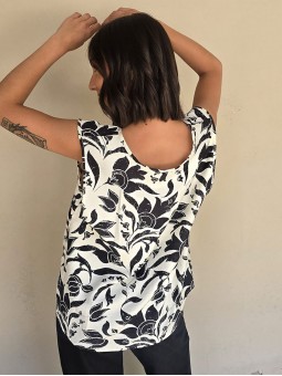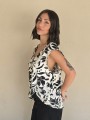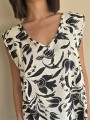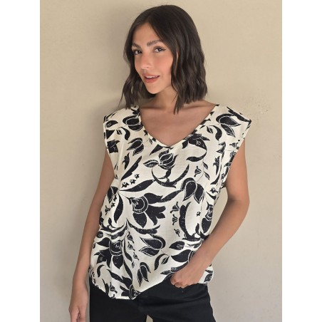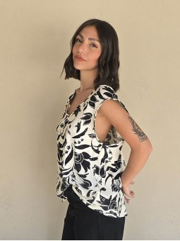 Blusa de lino con estampa en negro, con bretel ancho, corte suelto.