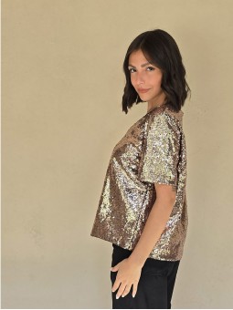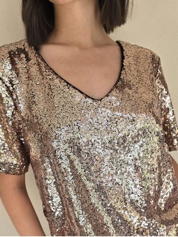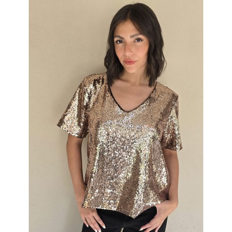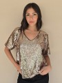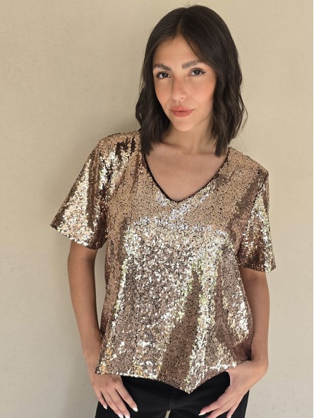 Blusa cuello V de lentejuelas, con forreria interna.