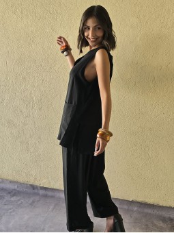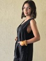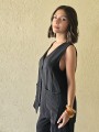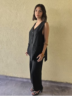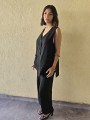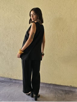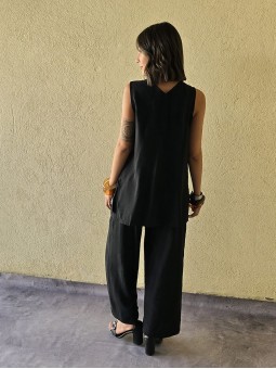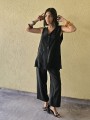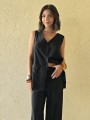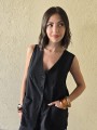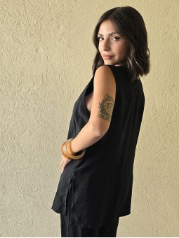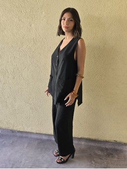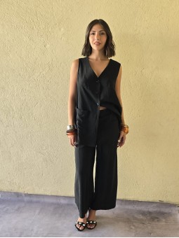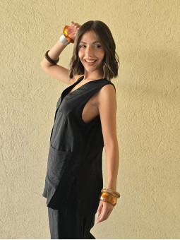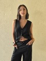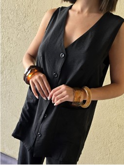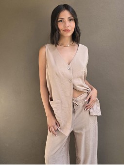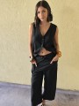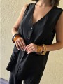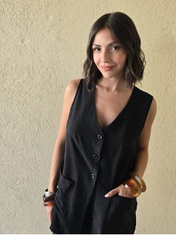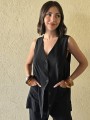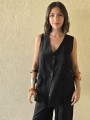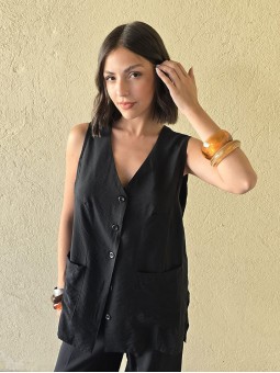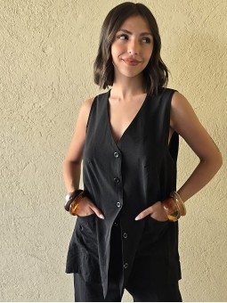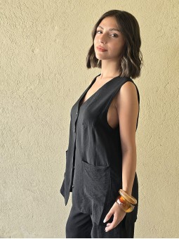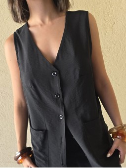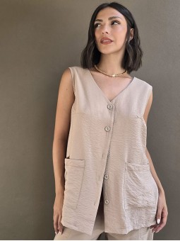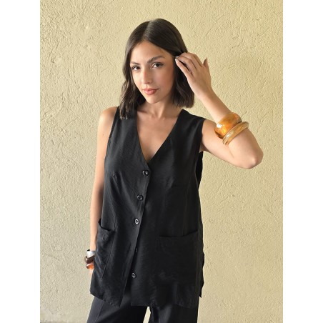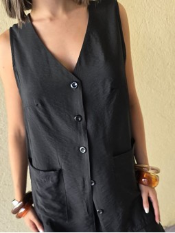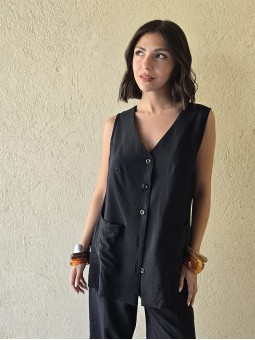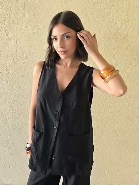 Chaleco largo de seda crush, con botones y bolsillos en delantero.