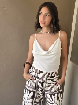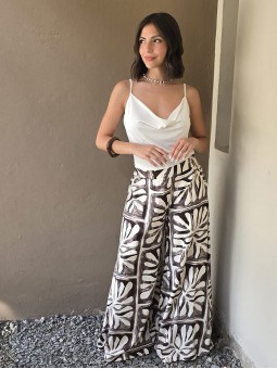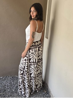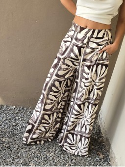 Maxipallazo de lino winoma estampado, con cintura posterior elástica.