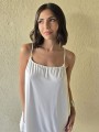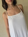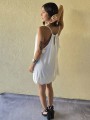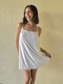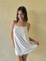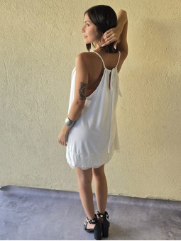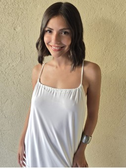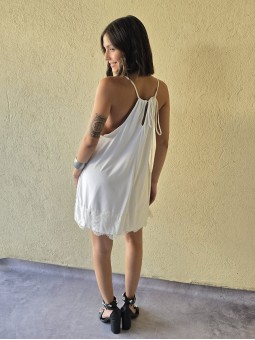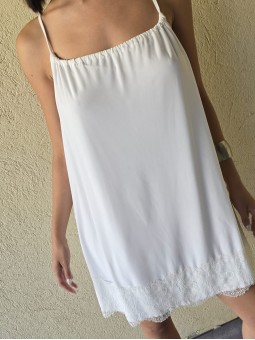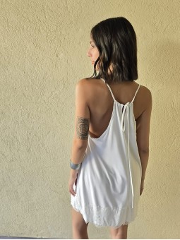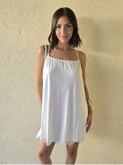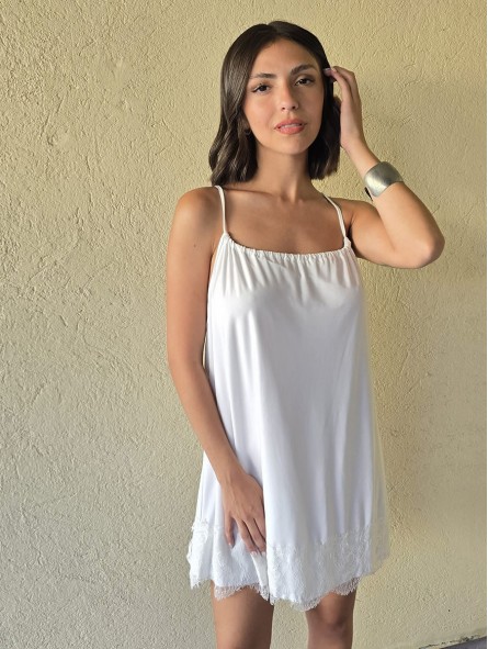 Vestido de microfibra, con espalda gota y detalle de puntilla en el ruedo.
