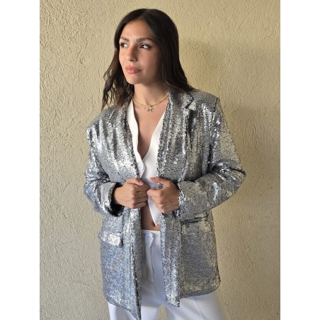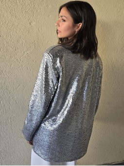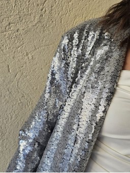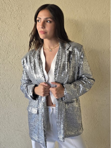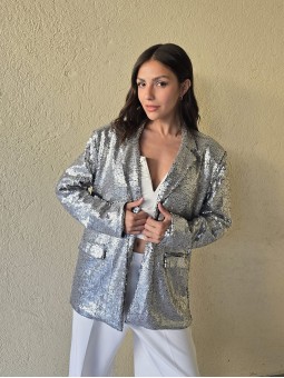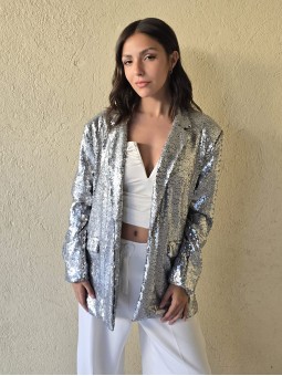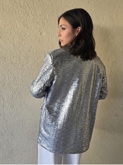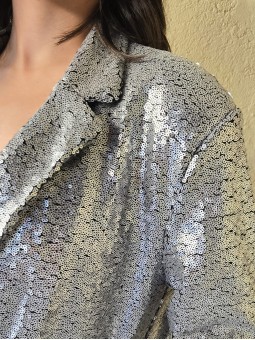 Blazer oversize de micro lentejuelas con forreria interna y hombreras.