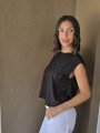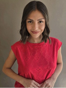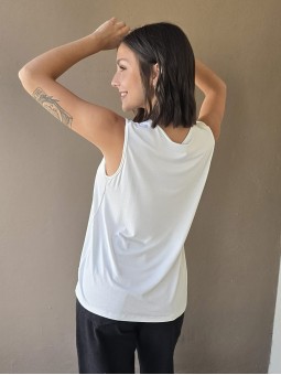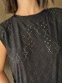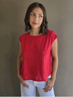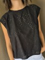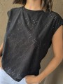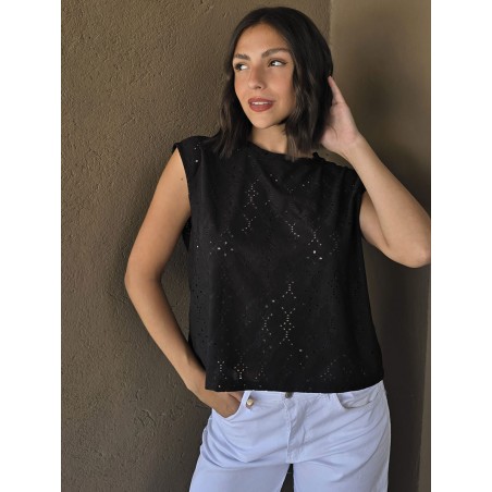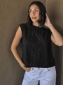 Remera sin mangas, de broderie de acetato.