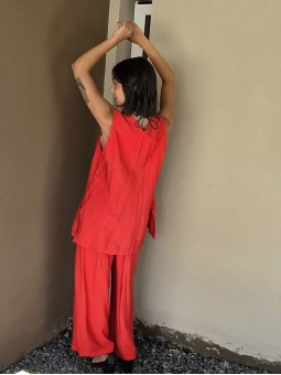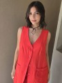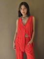Chaleco largo de seda crush, con botones y bolsillos en delantero.