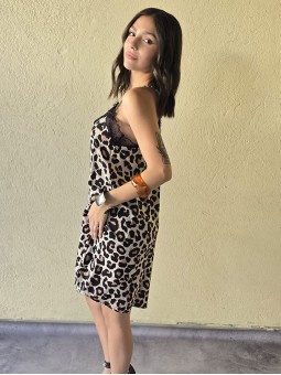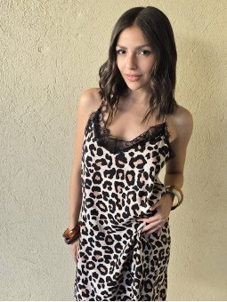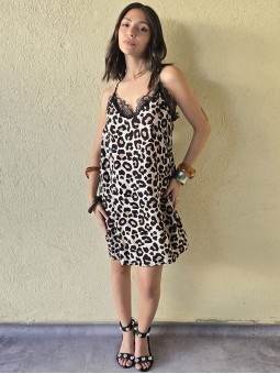 Vestido de satén elastizado con escote buche y espalda cruzada.