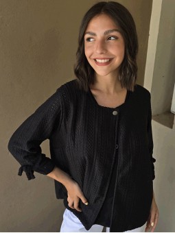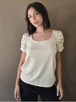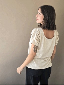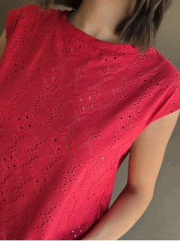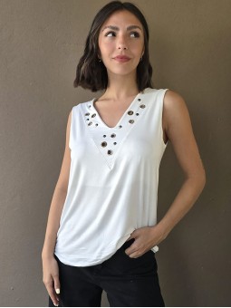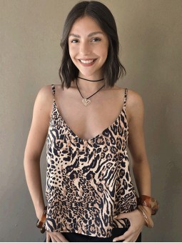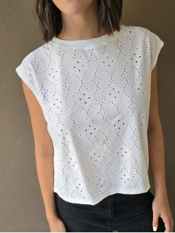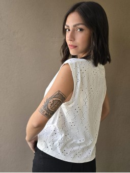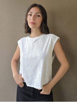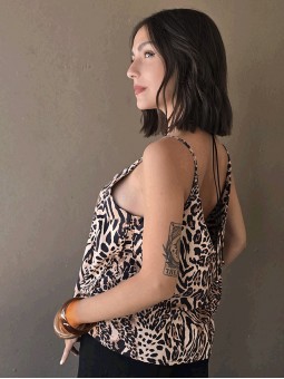 Musculosa corta (a la cintura) de modal soft, con inscripcion en delantero y abertura en parte superior de la espalda. * Consultá las medidas abajo en la descripción.